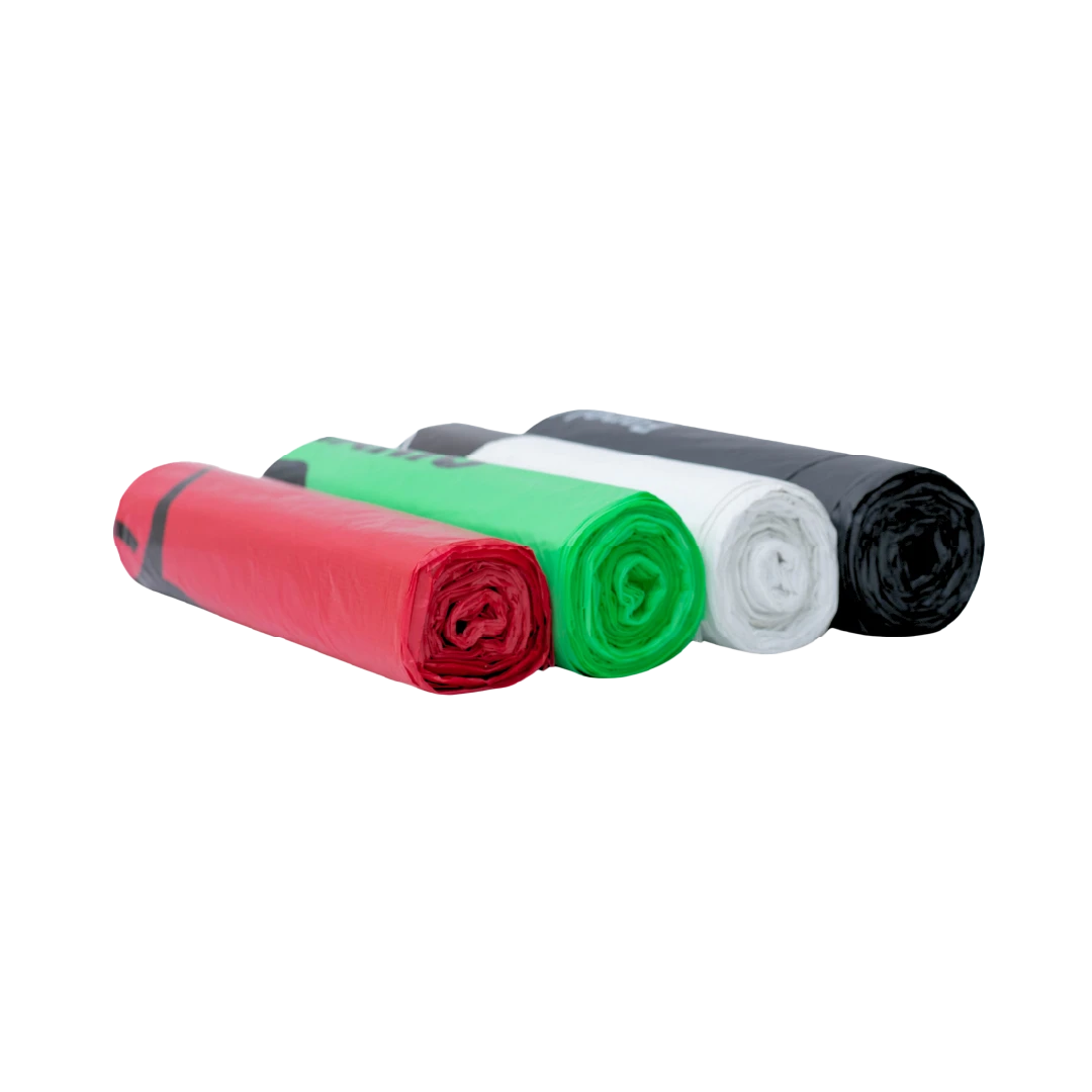 Bolsas en material recuperado de la industria, SIN logotipo y dobladas en paquetes de 10 unidades, en calibres 1,4 y 1,6