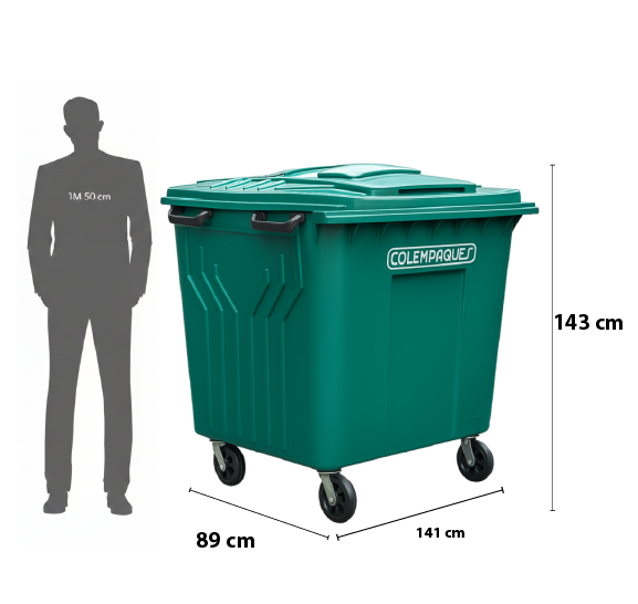 Este contenedor es ideal para la recolección de distintos tipos de residuos. Está fabricado con materiales de alta calidad y procesos avanzados que garantizan una larga vida útil. Su tapa de perfil redondeado evita el ingreso de agua lluvia.
