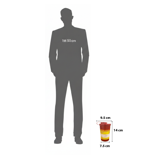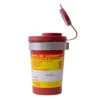 Recolector para cortopunzantes tamaño 0.6 litros, con base reforzada para mayor estabilidad y doble sistema de seguridad en la tapa, que evita aperturas accidentales. Incluye anillos de cierre
